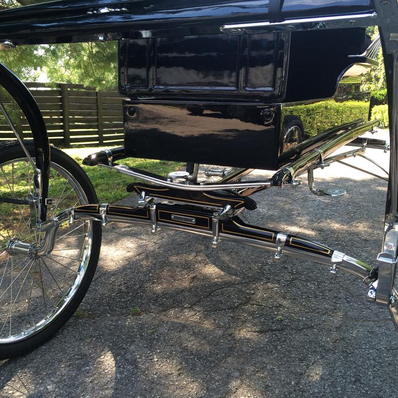 The Houghton Deluxe Classic Fine Harness Buggy has a painted body and gear with chrome axle ends. It features: